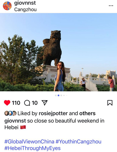 巴西青年乔瓦娜在照片墙平台(Instagram)发布的沧州照片合集帖文中发起号召——“So close so beautiful weekend in Hebei”(这么近,那么美,周末到河北)。在她的帖文下,网友们赞叹称“这里(沧州)实在是太美了”“她(非遗传承人齐爱红)太有天赋了”。