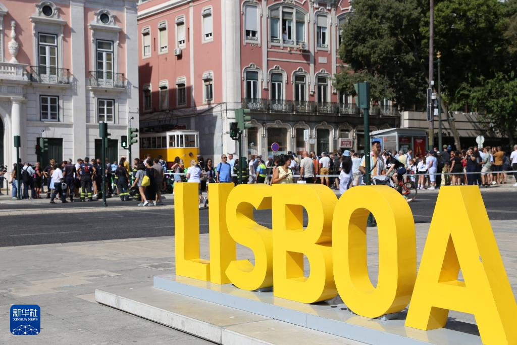 9月4日,人们聚集在里斯本有轨升降缆车事故现场附近。新华社记者 荀伟 摄