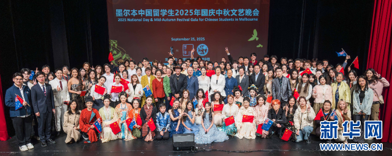 新华网墨尔本9月30日电(记者徐海静)2025墨尔本中国留学生国庆中秋文艺晚会近日在澳大利亚墨尔本杰纳扎诺学院礼堂举行,墨尔本多所高校的中国留学生奉上了一场精彩的文艺演出,喜迎国庆和中秋佳节。