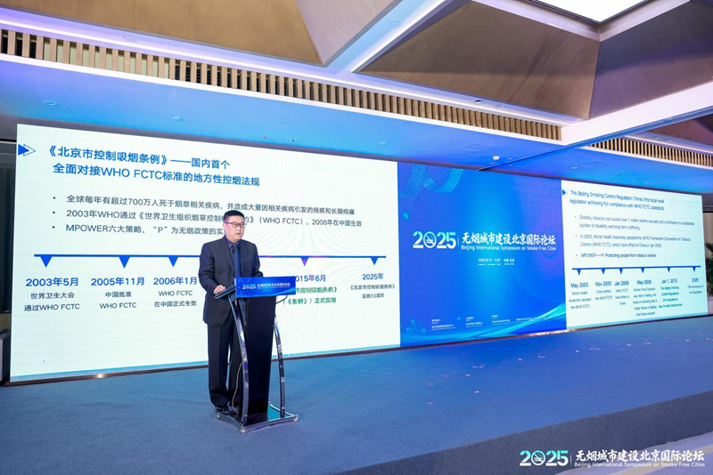 10月31日至11月1日,2025无烟城市建设北京国际论坛在北京举办。今年是《北京市控制吸烟条例》正式实施第十年,本次论坛以“无烟城市建设策略与经验”为主要议题,由北京市疾病预防控制中心指导,北京市控制吸烟协会主办,世界卫生组织驻华代表处和无烟草青少年行动基金北京代表处支持。