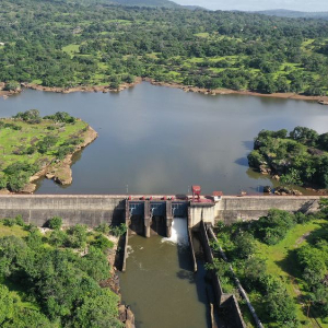 这是2025年4月24日在几内亚杜布雷卡省拍摄的凯乐塔水电站(无人机照片)。