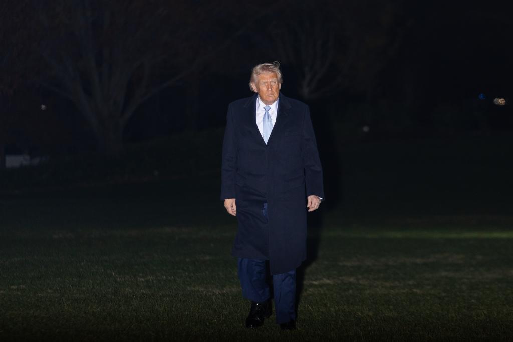 11月16日,在美国首都华盛顿,美国总统特朗普返回白宫。新华社记者胡友松摄