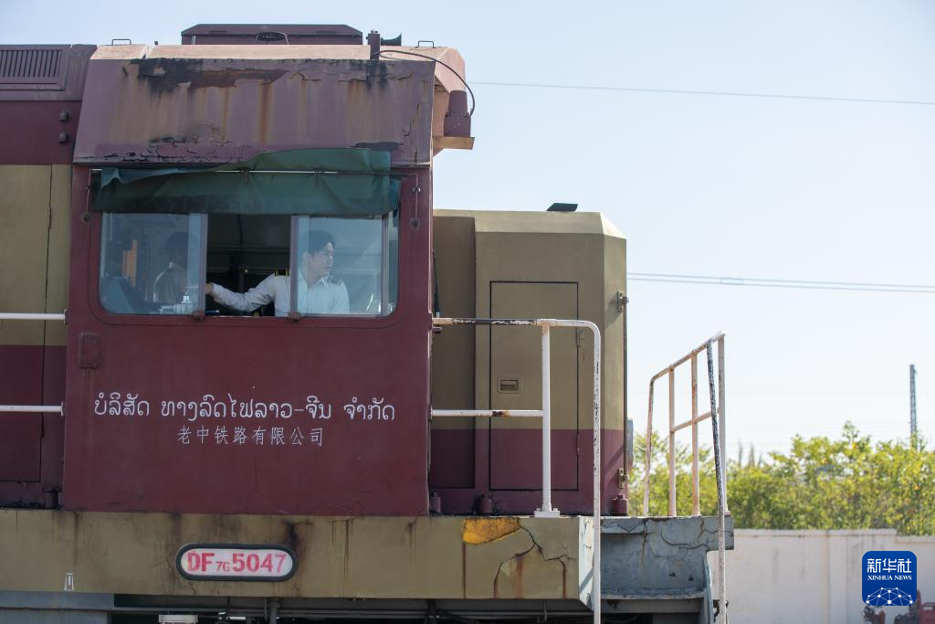 11月29日,在老挝首都万象中老铁路万象南站,发往中国郑州的木薯淀粉班列准备出发。新华社发(凯乔摄)