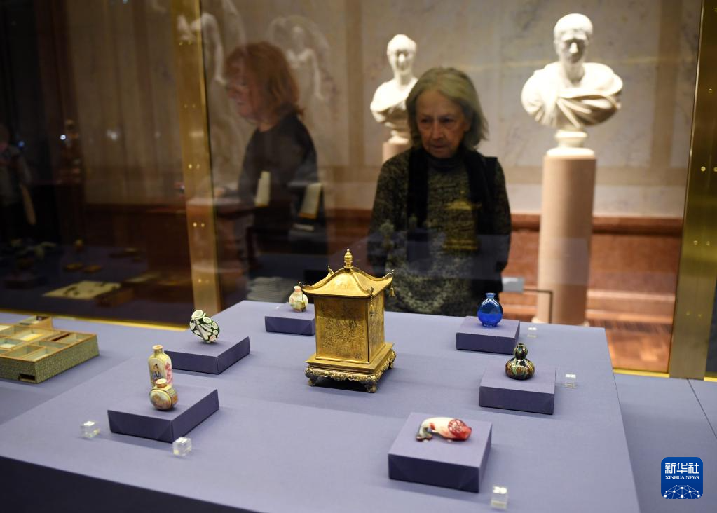 12月1日,在奥地利维也纳,观众观赏来自故宫博物院的文物。新华社记者 贺灿铃 摄
