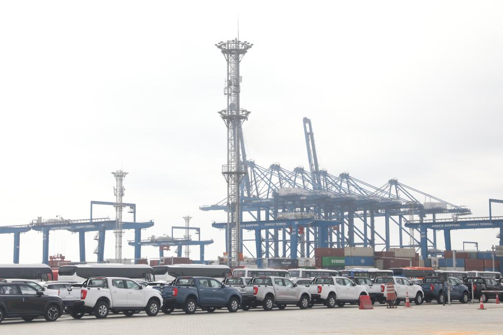 这是12月2日拍摄的运抵秘鲁钱凯港的车辆。