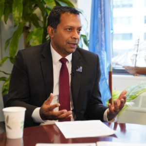 12月4日,联合国资本发展基金执行主任顾明达在位于纽约的办公室接受新华社记者专访。新华社记者 张凤国 摄