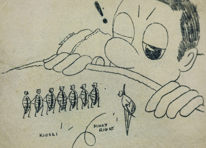 战俘威廉·克里斯蒂·沃特克创作的漫画。新华社发