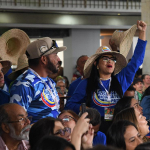 12月9日,人们在委内瑞拉首都加拉加斯参加“美洲主权与和平人民大会”开幕式。新华社发(马科斯·萨尔加多摄)