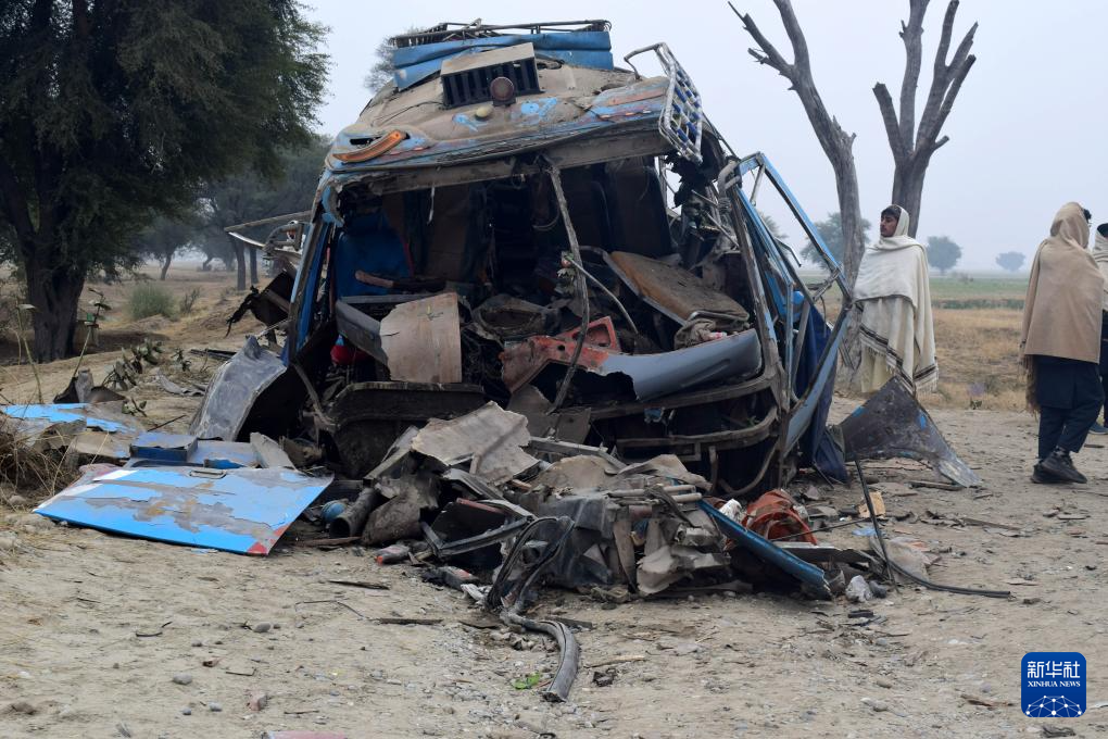 1月5日,在巴基斯坦西北部开伯尔-普什图省勒吉默尔沃德地区,人们聚集在损毁的巴士周围。新华社发
