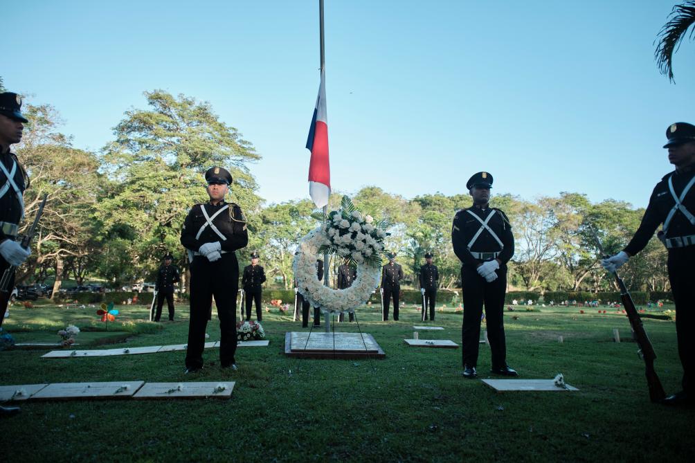这是2025年12月20日在位于巴拿马首都巴拿马城的“和平花园”公墓拍摄的悼念美军入侵遇难者的“全国哀悼日”活动现场。新华社记者许咏政摄