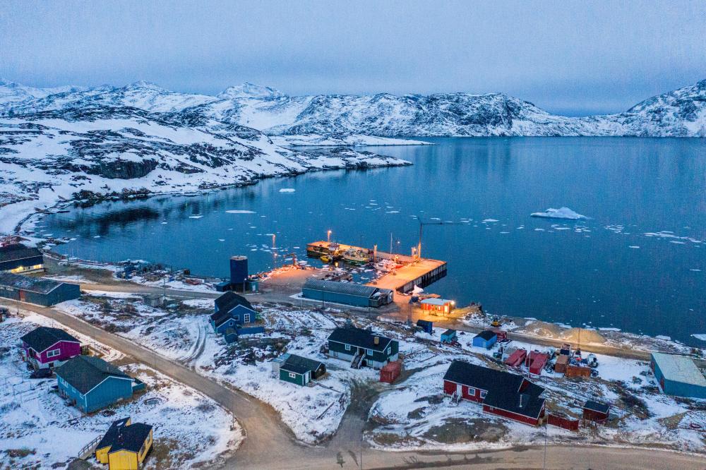 这是2025年3月21日拍摄的丹麦自治领地格陵兰岛纳尔萨克镇的码头(无人机照片)。新华社记者彭子洋摄