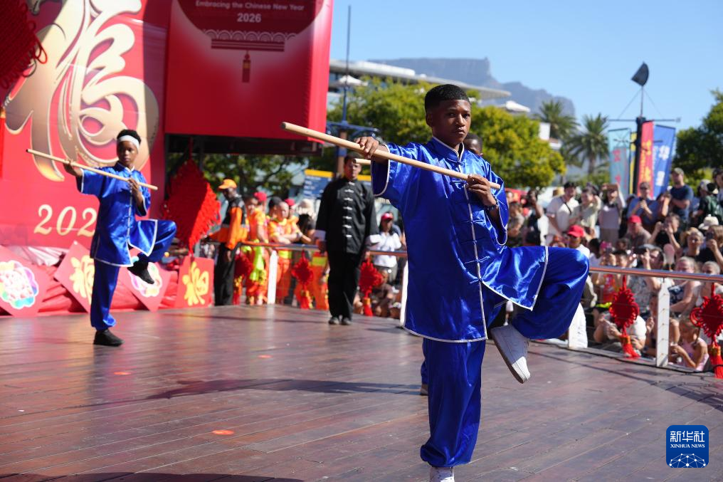 这是2月1日在南非开普敦维多利亚港区举行的中国年庆祝活动上拍摄的武术表演。新华社记者 王雷 摄