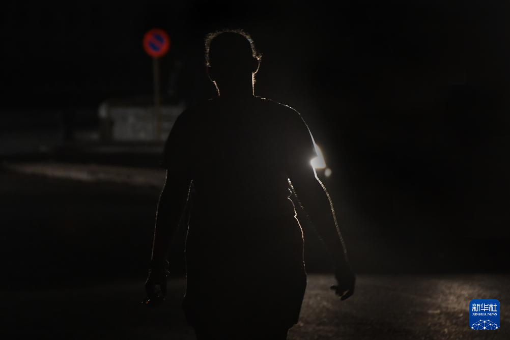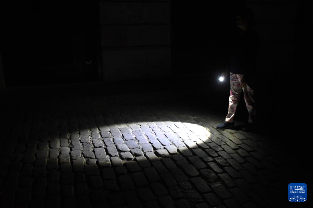 3月21日,在古巴首都哈瓦那停电期间,行人打着手电在街道上行走。新华社发(华金·埃尔南德斯摄)