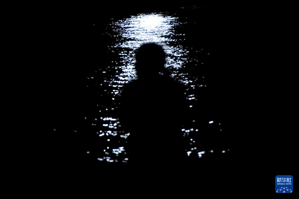 这是3月21日在古巴首都哈瓦那停电期间拍摄的海边的人影和月光。新华社发(华金·埃尔南德斯摄)