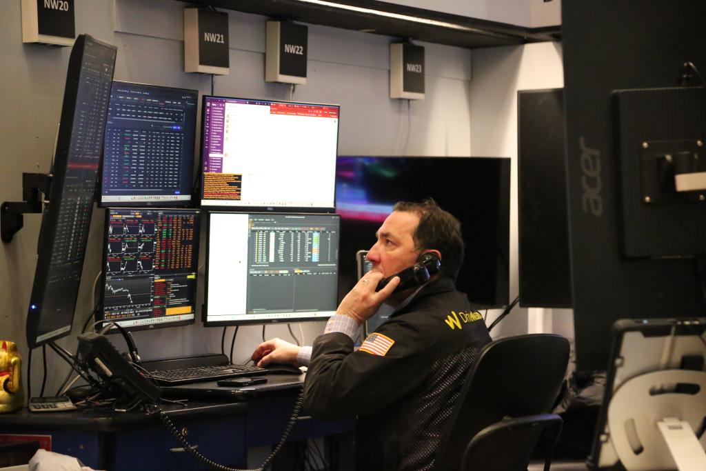 3月18日,纽约股市三大股指显著下跌。图为当天交易员在纽约证券交易所交易大厅内工作。新华社记者刘亚南摄