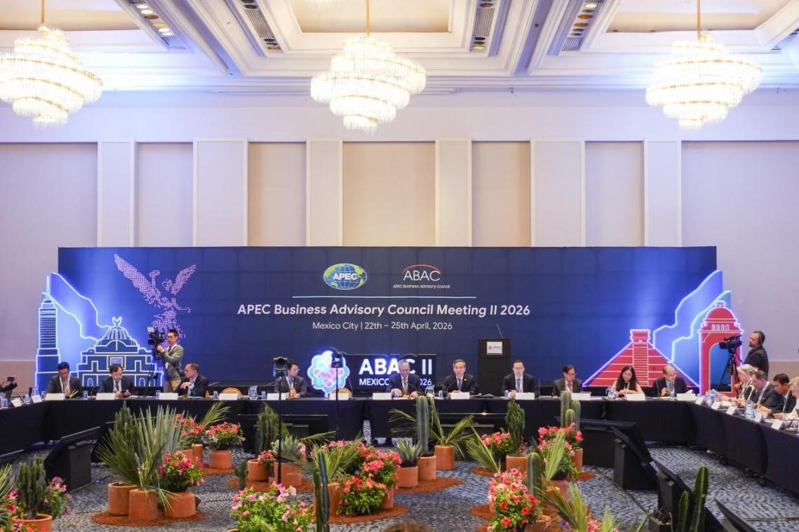 4月23日,2026年亚太经合组织(APEC)工商咨询理事会(ABAC)第二次会议在墨西哥首都墨西哥城开幕。来自21个APEC经济体的ABAC代表、候任代表、专家等超过200人参会。