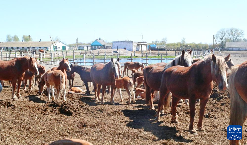 这是4月22日在白俄罗斯波列西耶国家辐射生态保护区内拍摄的俄罗斯重挽马。新华社发(任科夫摄)