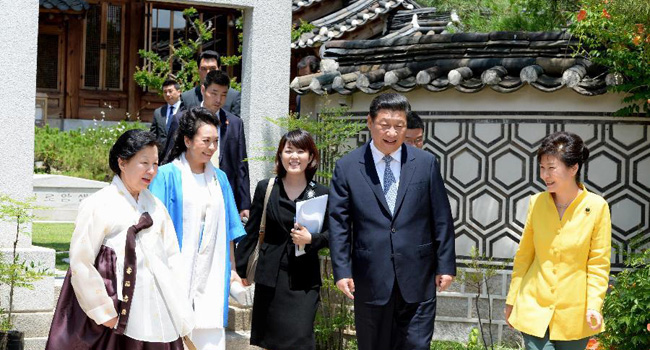 习近平主席这次访问韩国是一次走亲戚、串门式的访问,目的是增进两国人民友好感情,推动中韩关系再上新台阶。习近平主席同朴槿惠长时间会谈,对两国关系做出顶层设计。[详细]