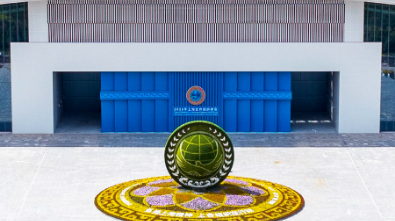 在合影现场,一组由与会各国国旗、上合组织会旗和联合国旗帜组成的恢弘旗阵,展现出不断壮大的上合大家庭的强大凝聚力和广泛影响力。