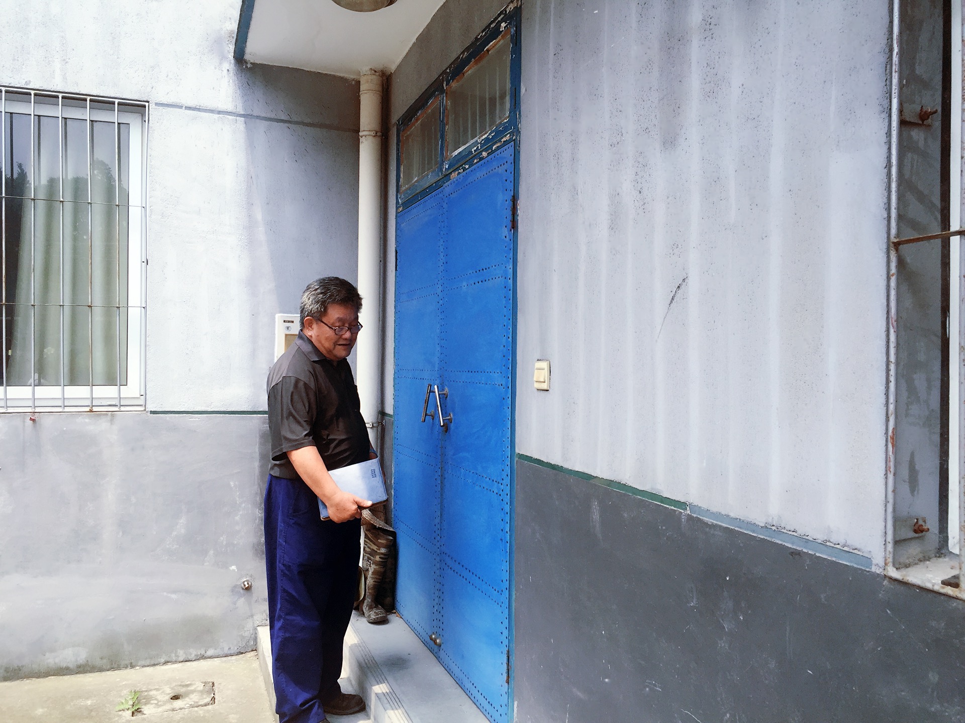 一个培养虫子的养殖大棚对面是一栋水泥外墙的房子,一楼就是姚海根的办公室。两张木桌子、几把椅子、两个书柜,就是办公室的主要家具,地上还放着两个绿色塑料外壳的暖水壶。书桌、椅子背上都写着“市府”两个白色漆字,姚海根说,这些桌椅都是以前市府淘汰下来的,用了二十多年了,但他不想换,“反正功能都一样”。