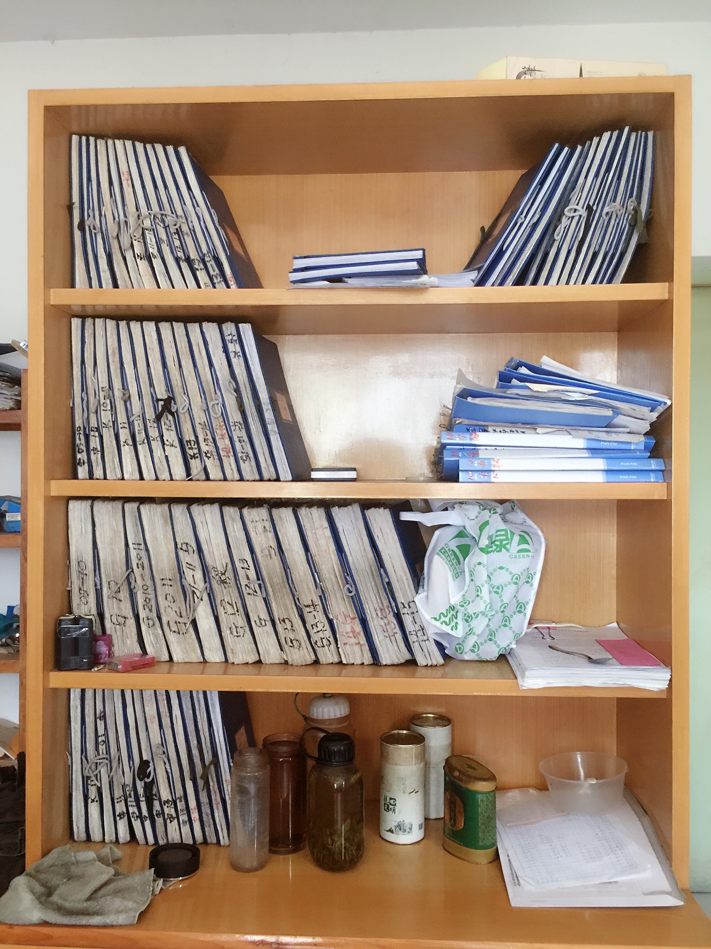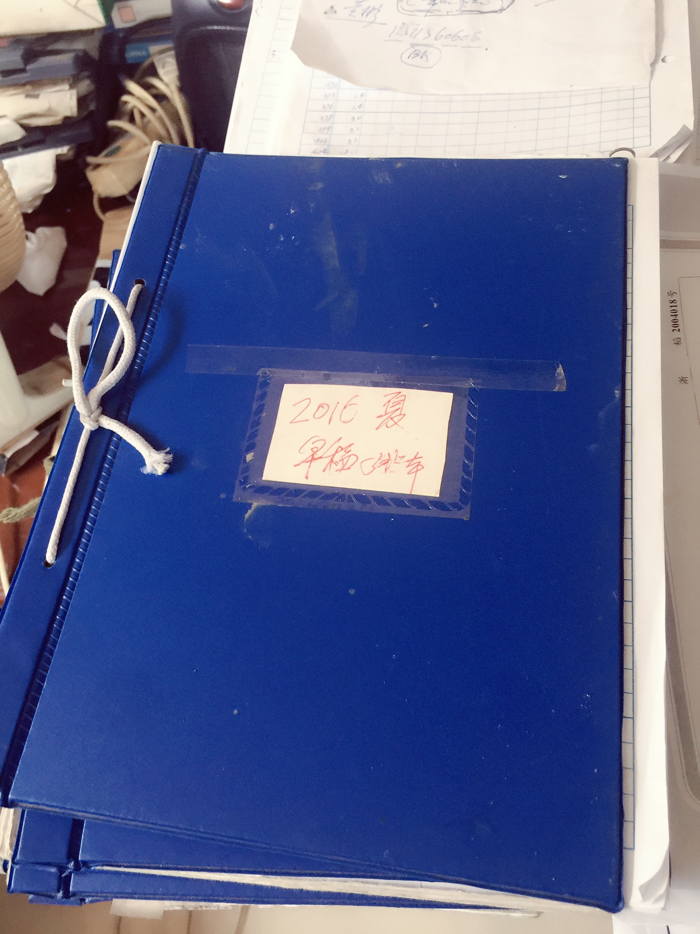 他的办公室到处都摆满了一本本厚厚的蓝皮笔记本,这都是水稻工作纪录表。72岁的姚海根每年要写一万六千份这样的报告。他不太会打字,每一个报告都是他一个字一个字手写的。(清华大学2015级国新班 薛瑾、陈碧玉、沈晓波、黄礼福、陈嘉林、陕少霞)