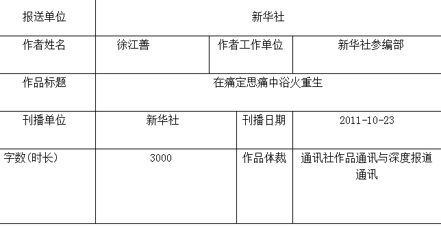 2012年初,新华社推荐这篇通讯参评中国新闻奖,这一年秋天,这一作品被评为二十二届中国新闻奖一等奖。