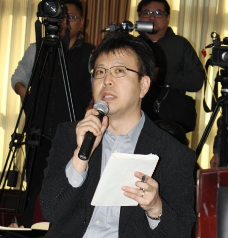 日本朝日新闻记者提问 郭金峰 摄