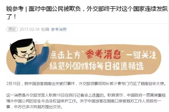 比如,中国游客遭遇越南边检殴打,虽然我们没有赶上第一落点,但在外交部公开向越南喊话后,我们将“点”聚焦在此,做了《面对中国公民被欺负,外交部终于对这个国家连续发飙了!》一文。