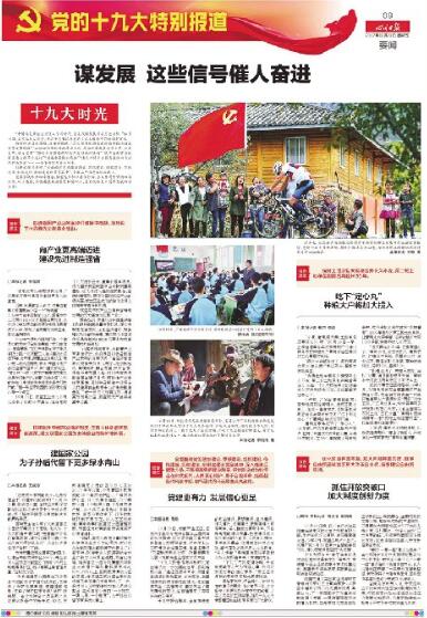 笔者对比这些党报的十九大报道版式设计,有的平铺直叙,有的条块分割,有的点面结合……不管什么样的版式,都力求用最简单明了的方式,满足不同群体的阅读需求。