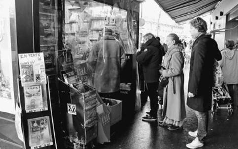 图为2015年1月《沙尔利周刊》袭击案后,巴黎市民在买报。李永群摄