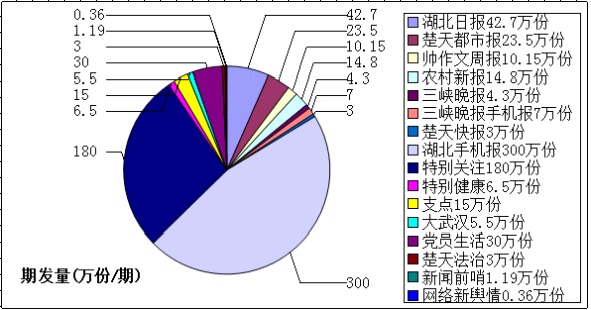湖北日报传媒集团以湖北省委机关报——湖北日报为旗舰,拥有8报8刊13家网站5个客户端90个官方微博微信及第三方平台号,报刊期发量640多万份,日均新媒体受众5500多万人。其中,湖北日报发行量保持在42万份以上;湖北日报客户端用户达到500万,官方微博粉丝329万;楚天都市报“看楚天”APP用户达40万,官方微信粉丝115万、官方微博粉丝突破1000万,影响力、活跃度、用户数均居全国媒体自建平台十强。楚天都市报连续14次上榜“中国500最具价值品牌”排行榜,品牌价值达95.05亿元。在国家新闻出版广电总局2017年发布的全国报业综合排名中,湖北日报传媒集团居第7位。