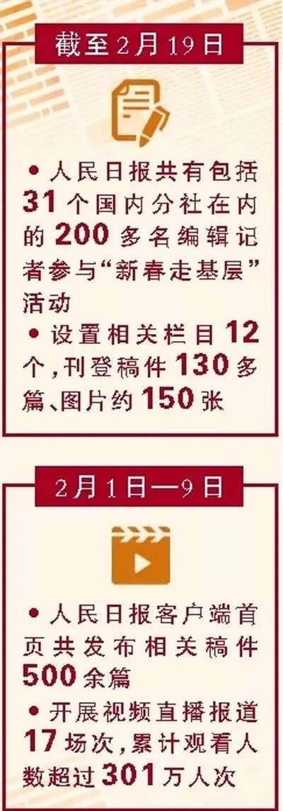 春节前后,人民日报精心组织开展“新春走基层”活动,从报社领导到普通编辑记者,深入生产生活一线,采写了一大批生动、鲜活、接地气、暖人心、充满正能量的精品佳作,锤炼了脚力、眼力、脑力、笔力,很多报道反响热烈、广受好评。今天的《人民日报》推出特别报道,刊登部分记者“走”的感悟、“行”的体会,与读者一起从“流动的中国”里感受繁荣发展的活力。