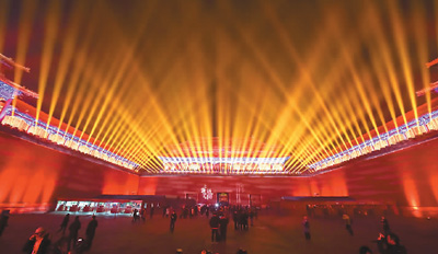 “上元之夜”活动现场,午门广场上演灯光秀。翁奇羽摄(人民视觉)