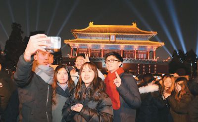 游客在神武门外拍照留念。 翁奇羽摄(人民视觉)