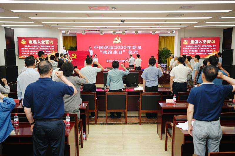 本网讯 6月25日上午,中国记协举行以“坚定理想信念 践行根本宗旨”为主题的2025年党员“政治生日”活动,这是中国记协深入贯彻中央八项规定精神学习教育的一项重要举措。中国记协党组书记、书记处书记刘思扬带领参加仪式的全体党员重温入党誓词,并向过“政治生日”的党员代表赠送贺卡。党组成员、书记处书记田玉红、殷陆君出席,党组成员、书记处书记、机关党委书记吴旭主持。