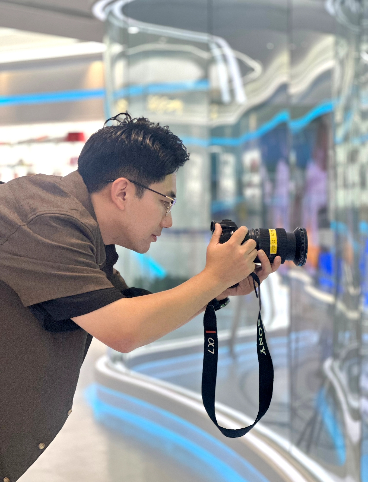 人民日报新媒体编辑王靖远正在拍摄素材。