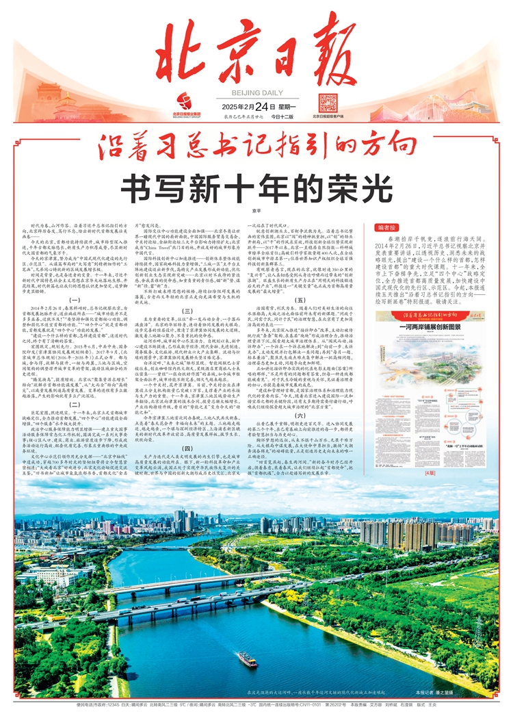 2025年2月24日,北京日报头版刊发《沿着习总书记指引的方向》特别报道。 北京日报报业集团 供图