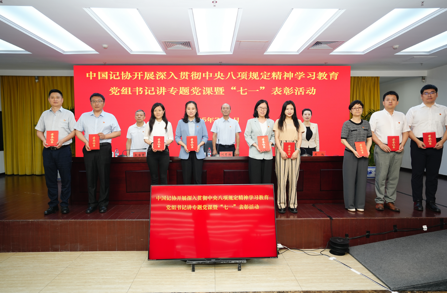 中国记协党组向中国记协“四好”党员(部分)颁发荣誉证书并合影。