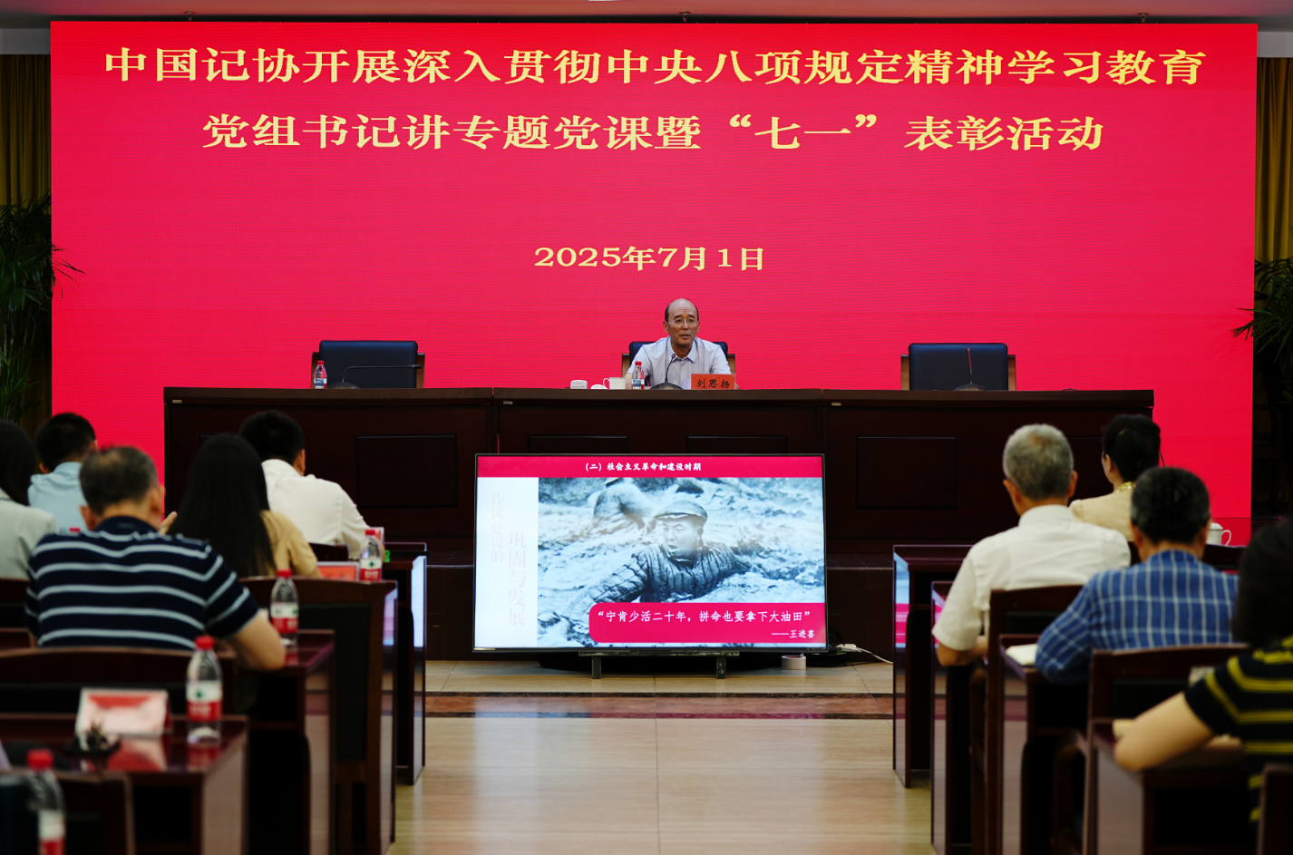 中国记协党组书记刘思扬以《深入贯彻中央八项规定精神 以作风建设新成效开创“记者之家”高质量发展新局面》为题为全体党员干部讲专题党课。