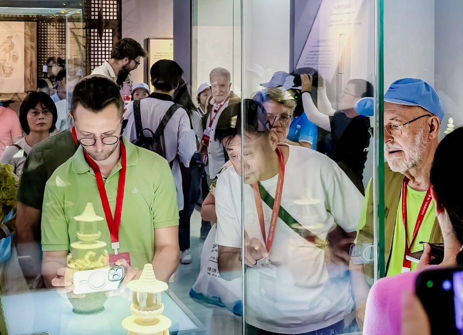 7月15日傍晚,我跟随记者团来到中国陶瓷博物馆。展厅里人很多,几十位肤色各异的外媒记者正沉浸体验着博物馆的各式瓷器。