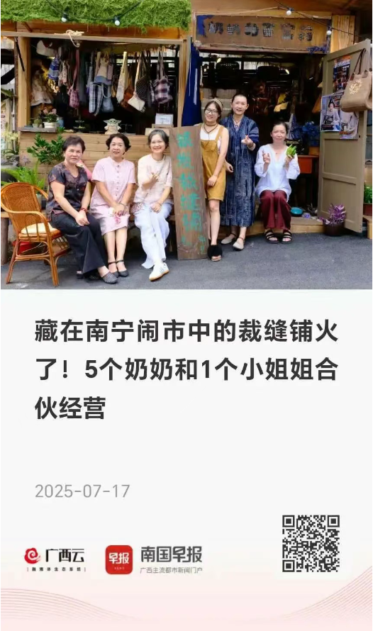 南国早报:《藏在南宁闹市中的裁缝铺火了!5个奶奶和1个小姐姐合伙经营》