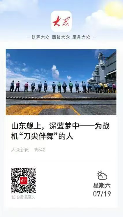 大众日报·大众新闻客户端:《山东舰上,深蓝梦中——为战机“刀尖伴舞”的人》