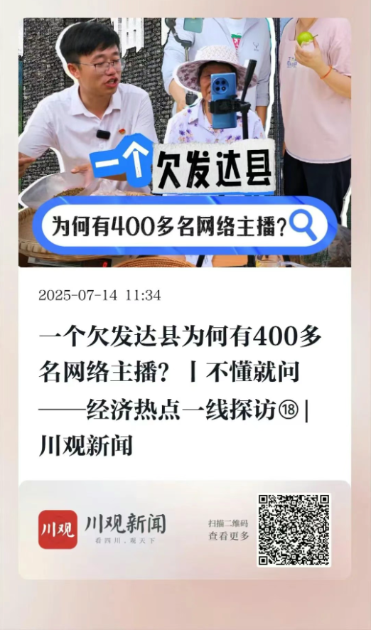 四川日报:《四川这个欠发达县,为何有400多名网络主播?丨不懂就问——经济热点一线探访⑱》
