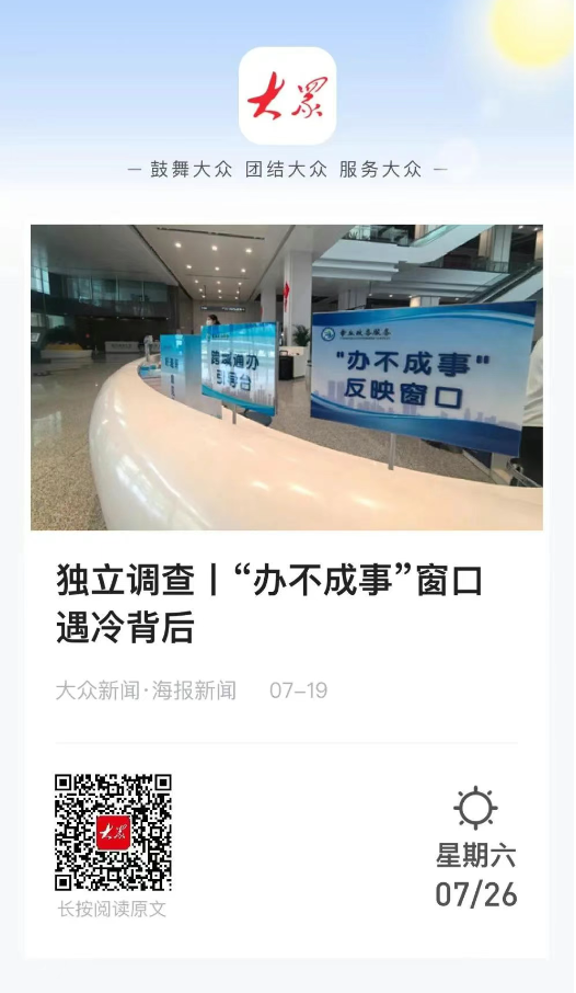 大众日报·大众新闻客户端:《独立调查丨“办不成事”窗口遇冷背后》
