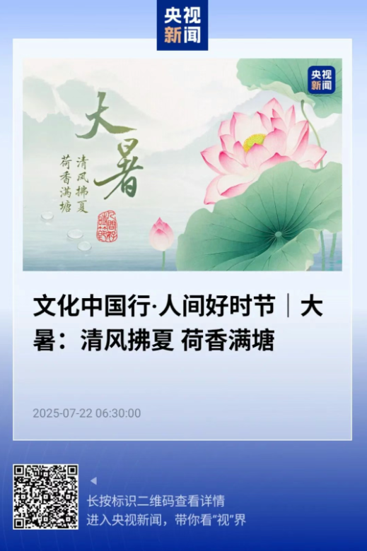 央视新闻:《文化中国行丨大暑:清风拂夏 荷香满塘》