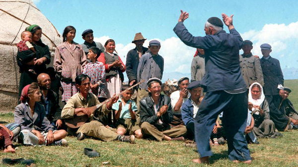 这张照片构图优美,层次鲜明,表现1978年7月20日,新疆霍城县前进牧场各族民兵配合人民解放军守卫边防的场景,一代又一代的巡边人不仅固守了祖国的安全,也彰显了军民鱼水情深和民族团结。