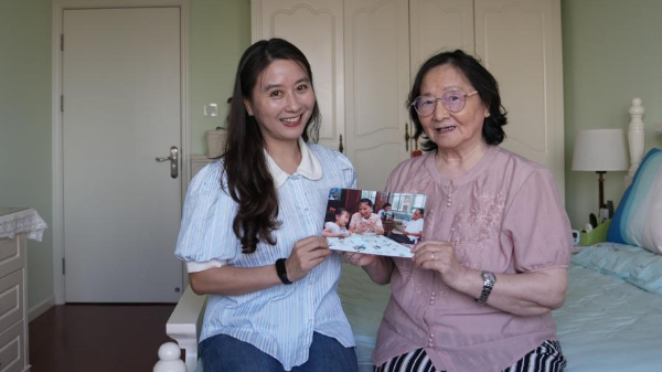 1980年,在上海闵行一户居民家中,新华社记者拍摄了这日常又温馨的家庭瞬间——那天,殷学雷回到位于工人新村的公婆家。公公看报纸,婆婆做衣服,活泼可爱的女儿拉着妈妈,要展示幼儿园教的折纸手工。一家三代其乐融融的瞬间,被摄影记者的镜头定格。照片中的殷学雷今年已77岁,当年的小囡马赟已是中年。这张老照片像时光的钥匙,打开了母女俩的记忆之门。